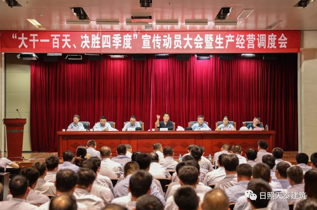 集團副總裁、公司董事長丁兆良作重要講話,在講話中,深刻闡述了集團丁杰董事長提出的“靠上、拼上、豁上,真干、實干、會干”十二字方針精神內(nèi)涵。他要求,各單位務(wù)必深刻領(lǐng)會丁杰董事長十二字方針要領(lǐng),實事求是結(jié)合本職工作,以高度的責(zé)任感和使命感立即投入到生產(chǎn)經(jīng)營任務(wù)中,戮力同心、砥礪奮進,不忘初心、牢記使命,堅決打贏這場攻堅戰(zhàn),為實現(xiàn)天泰建筑公司全年經(jīng)營目標任務(wù)做出積極貢獻,向興業(yè)集團成立20周年獻禮,向日照市成立30周年獻禮!