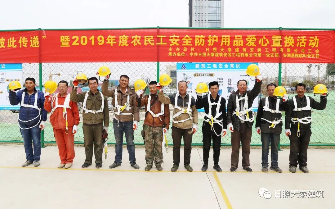 今天上午,由興業(yè)集團天泰建筑公司工會主辦、天泰建筑黨總支第一支部、安瀾嘉園臨時黨支部共同承辦的“安全你我共建,愛心彼此傳遞”暨 2019年度農(nóng)民工安全防護用品愛心置換活動在嵐山安瀾嘉園項目工地舉行。