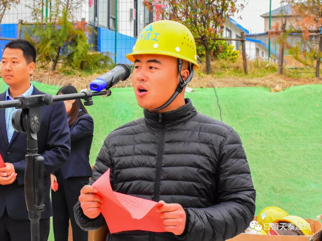 玉清勞務(wù)工人程斌代表領(lǐng)取安全用品人員發(fā)言,他在發(fā)言中十分感激天泰建筑公司給予的溫暖關(guān)懷,并表示在今后的施工過程中,一定嚴格按照施工要求和相關(guān)規(guī)章制度,提高安全意識,堅決將工作做好。
