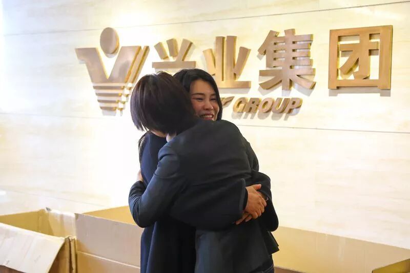 女職工代表發(fā)言時(shí),有人提議想要一個(gè)李總的擁抱。李總沒有遲疑,立即走向她,兩人緊緊地抱在了一起。