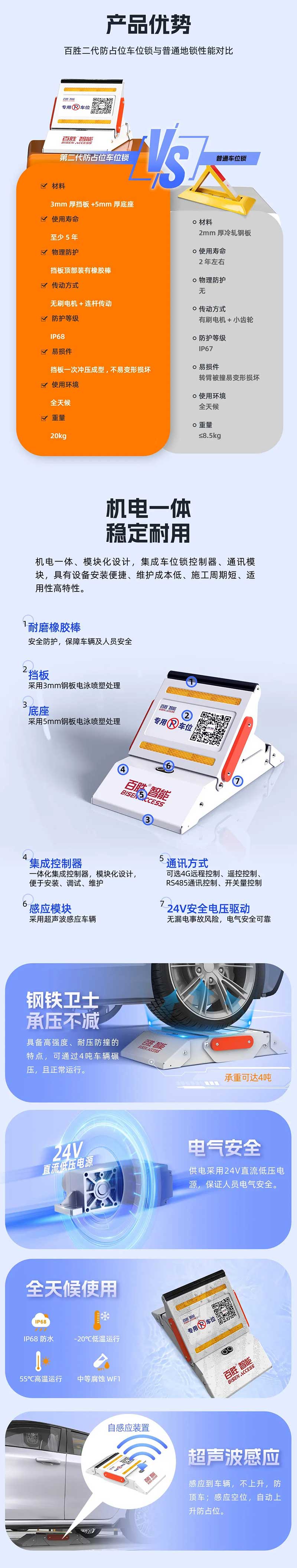 卓越品質(zhì)無人值守百勝智能第二代防占位車位鎖BS-CWS16