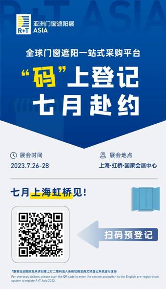 2023第十八屆R+T Asia亞洲門窗遮陽展煥新出發(fā),定檔7月26-28日于國家會展中心(上海),在持續(xù)發(fā)揮內(nèi)外貿(mào)優(yōu)勢的同時,繼續(xù)攜手BUILD ASIA Mega Show亞洲建筑及裝飾聯(lián)展,打造集產(chǎn)業(yè)聯(lián)動、工程集采、設計應用、國際商貿(mào)為一體的全產(chǎn)業(yè)鏈服務平臺。