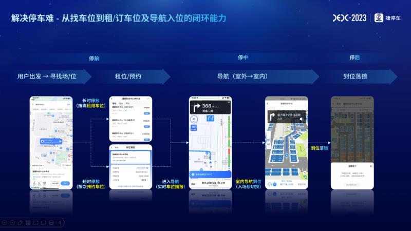 依照車主出行“停車前-中-后”的脈絡(luò)來看:車主在出發(fā)前,打開捷停車“找車位”服務(wù)尋找場(chǎng)/位,長(zhǎng)時(shí)停放可按需在車位優(yōu)選購買套餐,短時(shí)或單次停放可按次預(yù)約車位,隨后進(jìn)入導(dǎo)航,驅(qū)車過程中還可以獲取實(shí)時(shí)余位播報(bào);進(jìn)入停車場(chǎng)后,基于捷停車場(chǎng)景覆蓋和建設(shè)能力以及地圖合作伙伴的合作共創(chuàng),哪怕是地下停車場(chǎng)也可不受信號(hào)強(qiáng)弱影響,無縫切換到室內(nèi)導(dǎo)航,實(shí)現(xiàn)導(dǎo)航到位、到位落鎖;室內(nèi)定位導(dǎo)航還能解決場(chǎng)內(nèi)停車、找車、定位難的問題,幫助車主反向?qū)ぼ?、?dǎo)航離場(chǎng)。