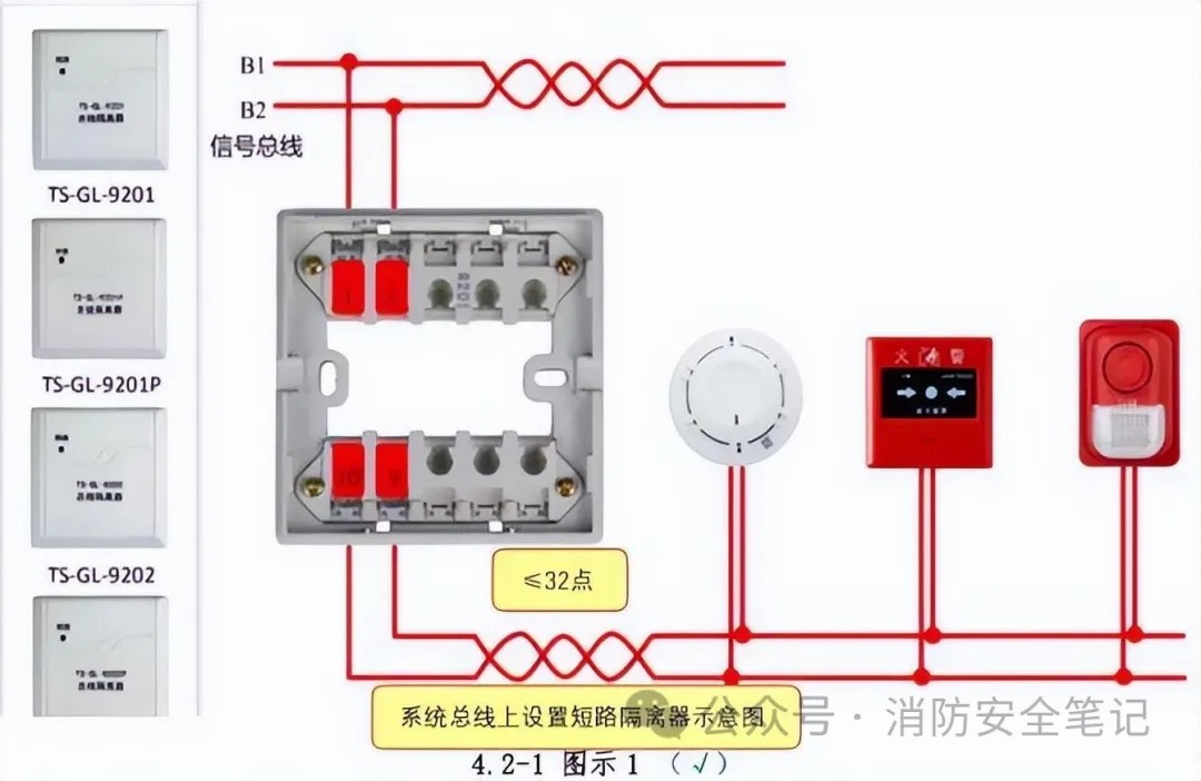 措施: 1.施工人員應(yīng)加強規(guī)范學(xué)習(xí),嚴格按設(shè)計圖紙施工;施工、調(diào)試過程中做好監(jiān)督、檢查工作;2.當(dāng)施工過程中出現(xiàn)變更時,應(yīng)由原設(shè)計單位出具設(shè)計變更,確保每只總線短路隔離器保護的火災(zāi)探測器、手動火災(zāi)報警按鈕和模塊等消防設(shè)備的總數(shù)不應(yīng)超過32點;在系統(tǒng)總線穿越防火分區(qū)時,在穿越處設(shè)置總線短路隔離器。 |