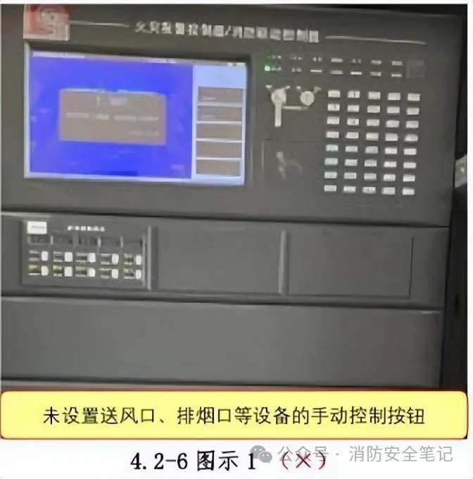 問題描述: 火災(zāi)報警聯(lián)動控制器上未設(shè)置手動按鈕控制送風(fēng)口、排煙口、排煙窗、排煙閥、電動擋煙垂壁的開啟或關(guān)閉?!緢D示1]