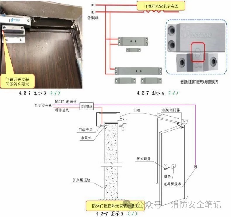 問題描述: 1)防火門監(jiān)控系統(tǒng)門磁開關(guān)安裝間距過大;【圖示1]2)按規(guī)范規(guī)定的具有信號反饋功能的防火門無開啟、關(guān)閉及故障狀態(tài)信號反饋和控制功能。[圖示2]