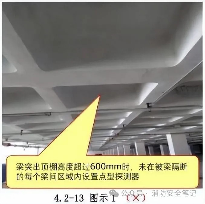 問題描述: 探測器的光束軸線至頂棚的垂直距離不符合規(guī)范要求?!緢D示1]。