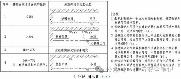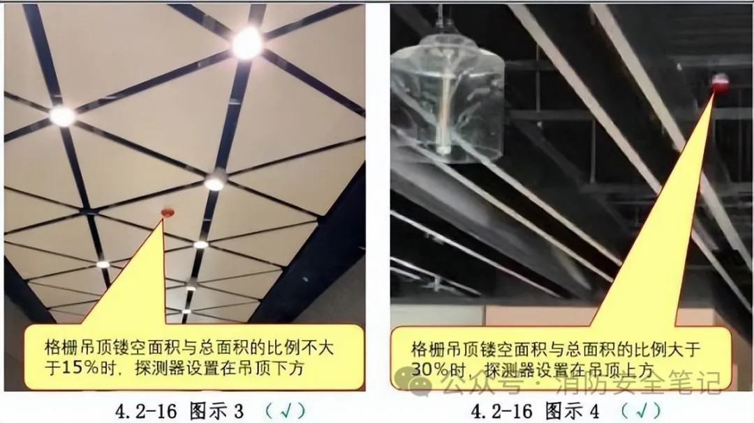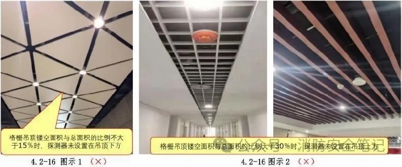 問題描述: 格柵吊頂處的感煙火災(zāi)探測器沒有根據(jù)格柵鏤空面積與總面積的比例情況進行設(shè)置。【圖示1][圖示2]。