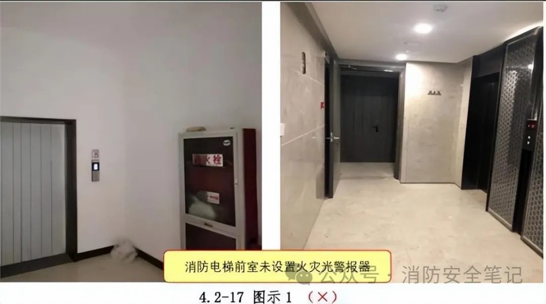 問題26:消防電梯前室未設(shè)置火災(zāi)光警報器 |