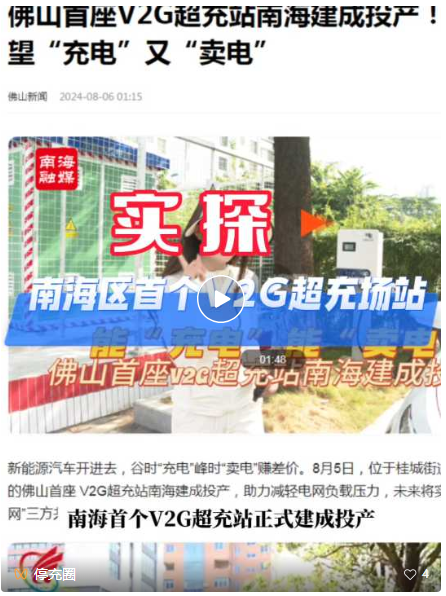 停充圈調(diào)研了位于佛山南海的首個V2G充放電項目,據(jù)介紹,該項目設(shè)置了2臺V2G充電車位,2臺480kW超充終端、3臺180kW雙槍直流充電樁和5臺40kW的雙槍直流充電樁。但是,停充圈也發(fā)現(xiàn),截止調(diào)研時間,該項目并沒有正式投入使用,還處于測試階段。且現(xiàn)場也沒有標識V2G充電樁。
