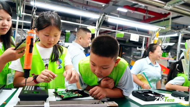 在專(zhuān)業(yè)技術(shù)員指導(dǎo)下,他們化身 “小小工程師”,親手組裝智能考勤設(shè)備:從識(shí)別零部件到精確咬合接口,從調(diào)試程序到功能測(cè)試,每一步都考驗(yàn)著對(duì)細(xì)節(jié)的把控,每一次嘗試都飽含探索的激情。當(dāng)親手組裝的設(shè)備成功啟動(dòng)時(shí),成就感如陽(yáng)光般綻放于臉龐,科技的種子也在實(shí)踐中悄然生根發(fā)芽。