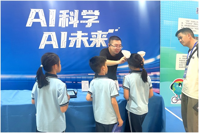 在腦機(jī)接口技術(shù)板塊,智能頭箍和腦電頭環(huán)備受關(guān)注,智能頭箍憑借可愛的貓耳發(fā)箍設(shè)計吸引了眾多中小學(xué)生駐足體驗。學(xué)生佩戴輕便的腦電采集頭環(huán)后,只需集中注意力,即可親身感受大腦信號轉(zhuǎn)化為機(jī)器指令的科技魅力。不少學(xué)生在體驗后興奮地表示,此次活動讓自己真切感受到 AI 技術(shù)的趣味性與實用性,進(jìn)一步激發(fā)了對科技探索的興趣。