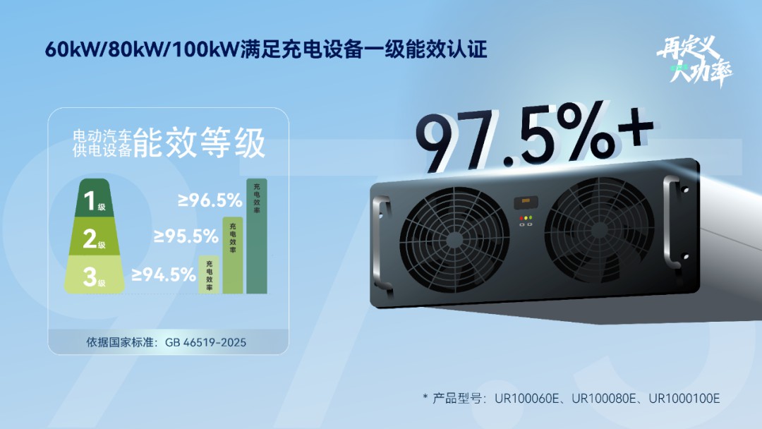 圍繞當(dāng)前重卡充換電、兆瓦超充等大功率需求,優(yōu)優(yōu)綠能推出的60kW/80kW/100kW/125kW系列第三代超大功率充電模塊,有效支撐充換電基礎(chǔ)設(shè)施向大功率超充、高效靜音、高可靠的高質(zhì)量發(fā)展路徑轉(zhuǎn)型。模塊峰值效率≥97.5%,在400V、600V、800V多個(gè)電壓段以及不同負(fù)載比例下,綜合加權(quán)充電效率>97%,完全超越新國(guó)標(biāo)充電設(shè)備一級(jí)能效要求。