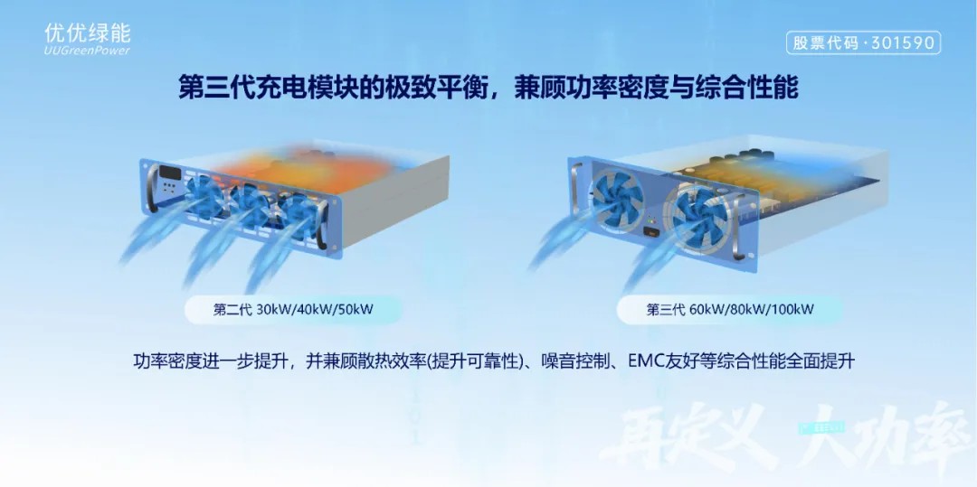 第三代超大功率充電模塊不僅僅追求極致的功率密度,還從整體的散熱效率(提升可靠性)、噪音控制、EMC友好綜合考慮使用體驗(yàn)。相比第二代充電模塊功率密度平衡化提升,通過(guò)更冗余的空間實(shí)現(xiàn)更綜合維度的低溫升、低噪音、高可靠充電體驗(yàn)。