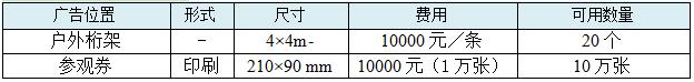 (一)國(guó)際標(biāo)準(zhǔn)展臺(tái)(9M2)國(guó)內(nèi)企業(yè)8800元/個(gè),國(guó)外企業(yè)$1500/個(gè),(角位展臺(tái)加收10%);(含中英文楣板、三面圍板、一張洽談桌、兩把椅子、兩盞射燈、一個(gè)220V/10A電源插座、地毯、會(huì)場(chǎng)保安、會(huì)場(chǎng)清潔等);