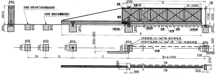 10、安全防盜:門體在停止?fàn)顟B(tài),通過減速箱的渦輪蝸桿機(jī)構(gòu),實(shí)現(xiàn)門體自鎖,外力不能推開。