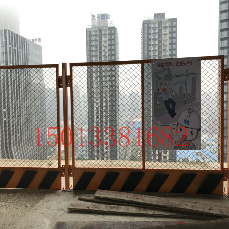 1. 電梯井口應(yīng)設(shè)置防護(hù)欄、固定柵門或工具式柵門,高度為1.5~1.8m,安裝時離樓地面不得大于50㎜,上下必須固定