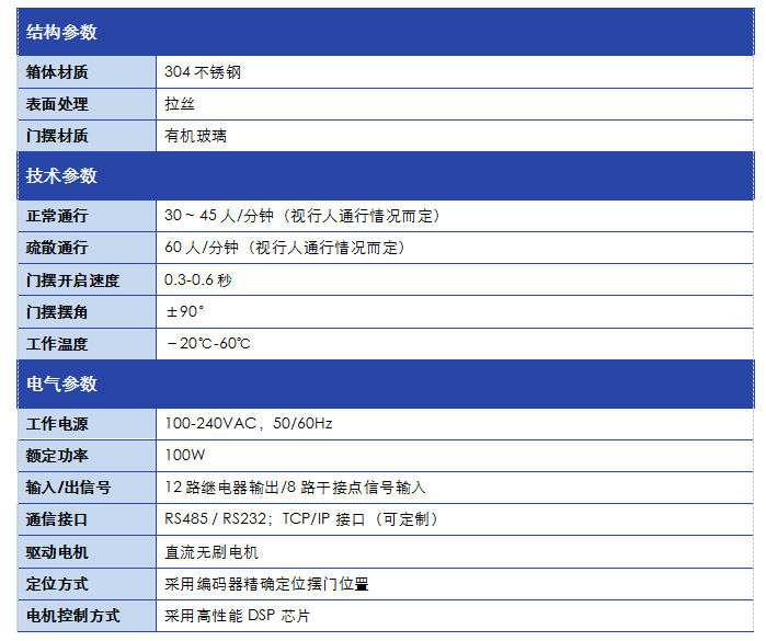 采用10對軍工級紅外探測器和精確的算法,可以精確地檢測通道內(nèi)行人通行位置,實現(xiàn)防尾隨通行、防反向通行、防夾等功能。