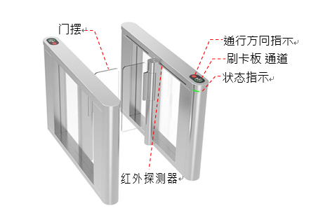 人行擺閘結(jié)構(gòu):門擺、紅外、刷卡板、指示燈等