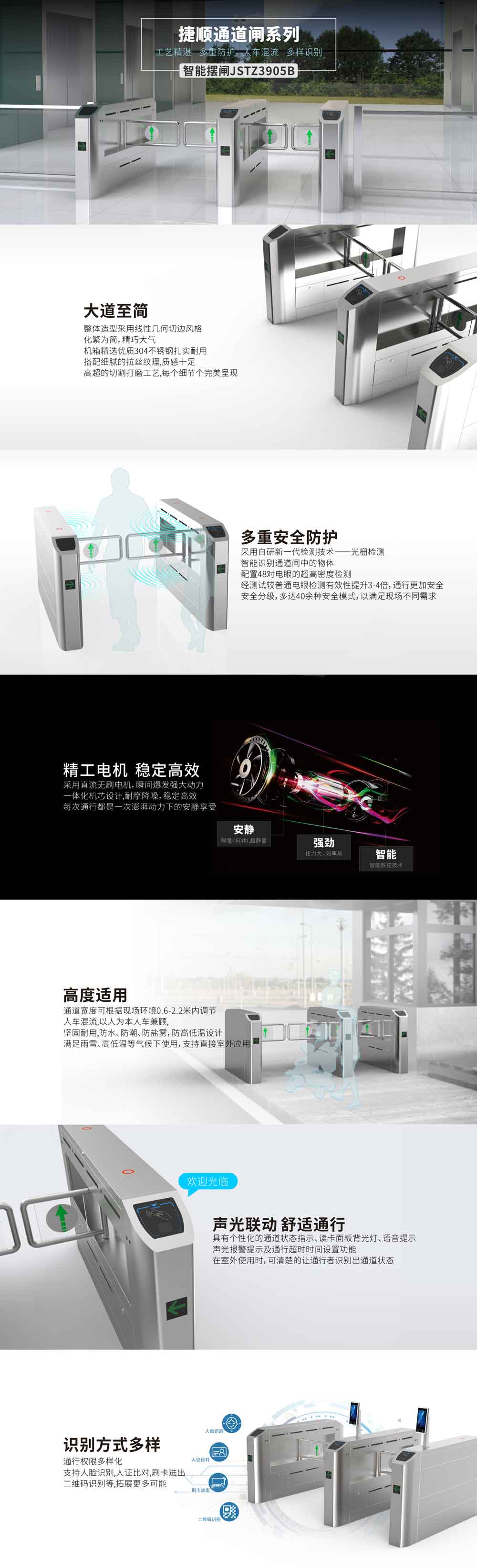 JSTZ3905B標配1200mm的寬通道,支持人與非機動車的混合通行 ,被廣泛應用于社區(qū)、園區(qū)、校園的出入口。機箱采用全新直紋拉絲表面處理技術、工藝焊縫、固定件拼縫。采用模具成型以及專用設備輔助成型等現(xiàn)代化生產(chǎn)技術,令產(chǎn)品工藝得到極大提升。