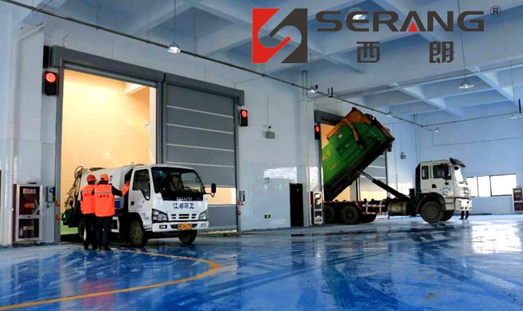 2、電軸式指卷在軸承上的快速升降門,類似的有快速卷簾門、大型快速堆積門、硬質快速門,適合垃圾中轉站、餐廚垃圾站、環(huán)衛(wèi)垃圾站處理中心等,這些速度比較快,速度大于1.0m/s;每天開關頻次也高,可達600-800次,滿足車輛來回運送垃圾的要求。