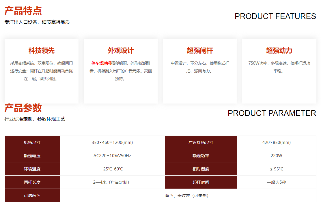 金建星JX-G356A工業(yè)園廣告道閘:道閘桿固定有防撞功能,并且?guī)в谐?、防結(jié)冰等功能,溫度可以自行調(diào)整,道閘機(jī)箱廣告面可作門式開啟,便于安裝廣告畫面。