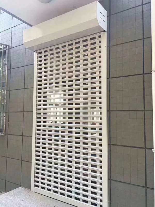 單層沖孔鋁合金卷閘門透光透氣,多用于商鋪,庭院等