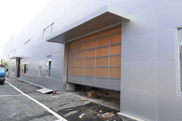 (4)門板框架:我廠專利產(chǎn)品鋁型材,型材規(guī)格可由門板大小及抗風(fēng)性能來選擇相應(yīng)型號(hào)、尺寸、的牌號(hào)型材。并有多種防夾手功能的型材。