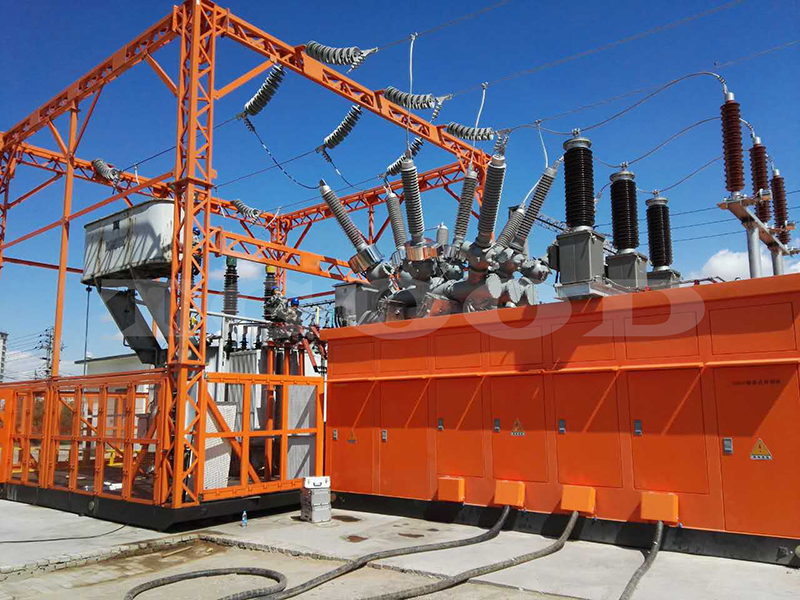 為了化解居民用電需求和變電站檢修改造之間的矛盾,采用目前變電站行業(yè)內(nèi)先進的模塊化移動變電站,開展替換式作業(yè)。采用移動變電站臨時轉(zhuǎn)帶原站負荷,將變電站的停電作業(yè)轉(zhuǎn)換為不停電作業(yè),轉(zhuǎn)變技改、檢修作業(yè)模式,在提升用戶用電可靠性的同時順利完成變電站改造、檢修任務(wù)。
