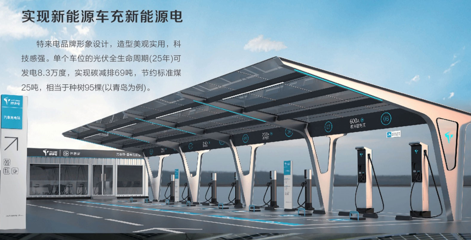 特微網(wǎng)是為了響應(yīng)國(guó)家碳中和政策,結(jié)合特來電品牌形象,設(shè)計(jì)的光伏+雨棚+充電的一體化解決方案。方案充分利用了充電站雨棚空間,在實(shí)現(xiàn)遮風(fēng)擋雨的同時(shí),引入了綠色清潔能源,實(shí)現(xiàn)新能源車充新能源電,可有效減少充電高峰期的電網(wǎng)負(fù)荷,為電網(wǎng)實(shí)現(xiàn)削峰填谷的作用。