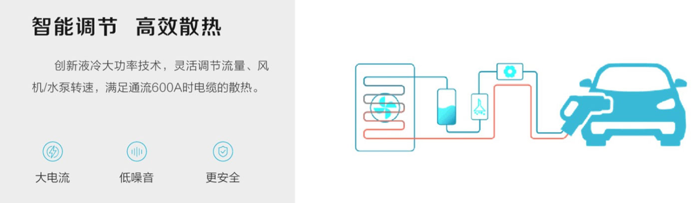 液冷直流充電終端是特來(lái)電面向大功率充電的發(fā)展趨勢(shì)提供的大功率直流充電解決方案。電動(dòng)汽車最快可在10分鐘內(nèi)完成0-80%的補(bǔ)能過(guò)程,最大化滿足超充需求。充電功率最快可達(dá)600kW,需與群充系列中的充電箱變/群控箱配合使用,為電動(dòng)汽車帶來(lái)加油般的充電體驗(yàn)。