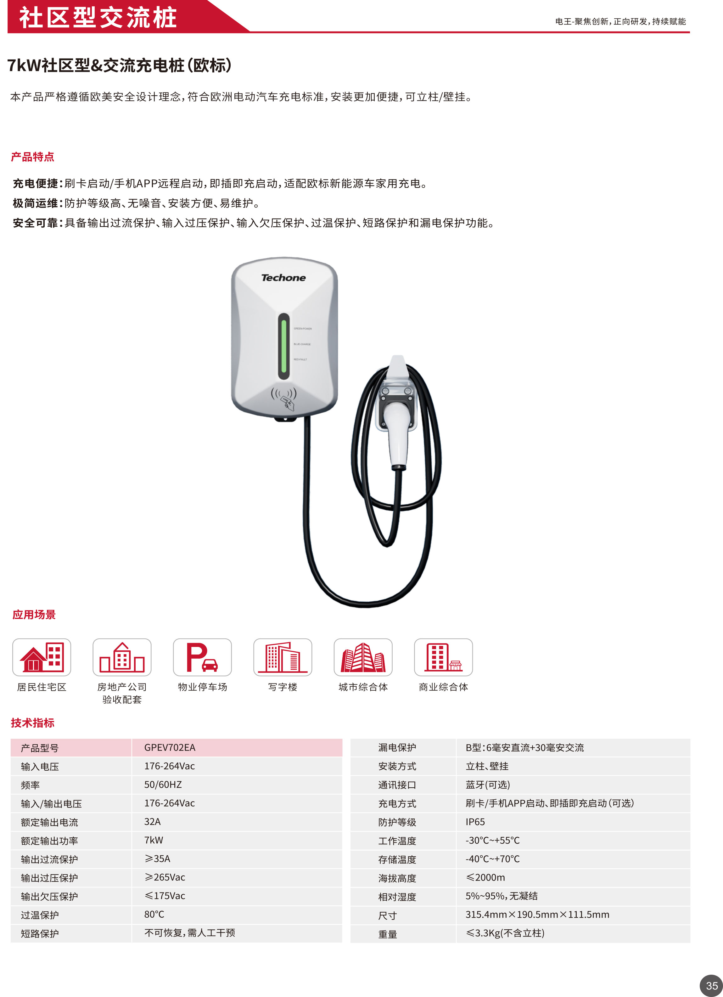 產(chǎn)品名稱:7kW社區(qū)型&交流充電樁(歐標(biāo))