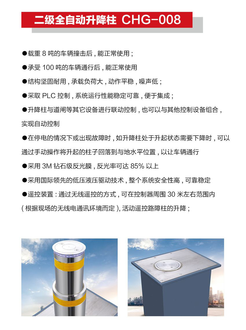二級(jí)全自動(dòng)升降柱 CHG-008產(chǎn)品,請(qǐng)仔細(xì)瀏覽本頁(yè)面。如您還有疑問,請(qǐng)撥打服務(wù)電話,我們將免費(fèi)為您提供二級(jí)全自動(dòng)升降柱 CHG-008的款式、價(jià)格、生產(chǎn)廠家、安裝維修等方面的咨詢服務(wù)。