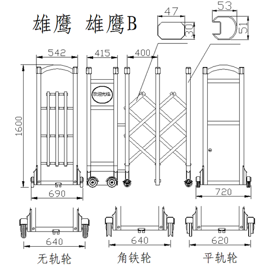 南北德信NB-雄鷹不銹鋼伸縮門門體采用公司自行加工優(yōu)質(zhì)不銹鋼和鋁型材等材料制作,主框架采用立體四維平行原理鉸接,伸縮靈活。伸縮門主要由門體、驅(qū)動器、控制系統(tǒng)構(gòu)成。驅(qū)動器采用特種電機(jī)驅(qū)動,蝸輪蝸桿減速,并設(shè)有手動離合器,停電時(shí)可手動啟閉,控制系統(tǒng)有臺控及遙控兩種??膳鋫錆L動顯示屏,顯示個(gè)性文字內(nèi)容。還可選配備智能紅外線探頭防碰撞裝置,運(yùn)行時(shí)遇人或異物20-30CM可自動返回運(yùn)行,從而保障車輛及行人的安全。適用于工礦企業(yè)、機(jī)關(guān)院校、娛樂場所、賓館飯店等庭院圍墻門。起到美化環(huán)境、改善企業(yè)面貌、提升企業(yè)形象;有助于營造文明社會、文明企業(yè)、文明城市氣氛;
