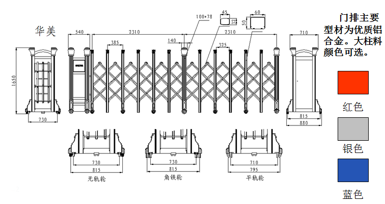 南北德信華美-L鋁合金伸縮門門體采用公司自行加工優(yōu)質(zhì)不銹鋼和鋁型材等材料制作,主框架采用立體四維平行原理鉸接,伸縮靈活。伸縮門主要由門體、驅(qū)動器、控制系統(tǒng)構(gòu)成。驅(qū)動器采用特種電機驅(qū)動,蝸輪蝸桿減速,并設有手動離合器,停電時可手動啟閉,控制系統(tǒng)有臺控及遙控兩種??膳鋫錆L動顯示屏,顯示個性文字內(nèi)容。還可選配備智能紅外線探頭防碰撞裝置,運行時遇人或異物20-30CM可自動返回運行,從而保障車輛及行人的安全。適用于工礦企業(yè)、機關(guān)院校、娛樂場所、賓館飯店等庭院圍墻門。起到美化環(huán)境、改善企業(yè)面貌、提升企業(yè)形象;有助于營造文明社會、文明企業(yè)、文明城市氣氛;