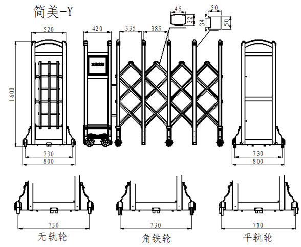 南北德信簡美-Y鋁合金伸縮門門體采用公司自行加工優(yōu)質(zhì)不銹鋼和鋁型材等材料制作,主框架采用立體四維平行原理鉸接,伸縮靈活。伸縮門主要由門體、驅(qū)動器、控制系統(tǒng)構(gòu)成。驅(qū)動器采用特種電機驅(qū)動,蝸輪蝸桿減速,并設(shè)有手動離合器,停電時可手動啟閉,控制系統(tǒng)有臺控及遙控兩種。可配備滾動顯示屏,顯示個性文字內(nèi)容。還可選配備智能紅外線探頭防碰撞裝置,運行時遇人或異物20-30CM可自動返回運行,從而保障車輛及行人的安全。適用于工礦企業(yè)、機關(guān)院校、娛樂場所、賓館飯店等庭院圍墻門。起到美化環(huán)境、改善企業(yè)面貌、提升企業(yè)形象;有助于營造文明社會、文明企業(yè)、文明城市氣氛;