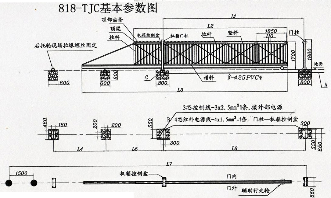 一、整體特性:產(chǎn)品門型有特種優(yōu)質(zhì)鋁型材、不銹鋼201#靜電噴涂、精拋不銹鋼304#三種材質(zhì)可供選擇。材料力學(xué)性能與化學(xué)成分符合現(xiàn)行國(guó)家相應(yīng)標(biāo)準(zhǔn)。門體、門柱、緊固件、結(jié)構(gòu)件均表面靜電噴涂處理,抗銹能力強(qiáng),色澤豐富。整體外型美觀、結(jié)構(gòu)緊湊、各個(gè)部位全部采用不銹鋼304螺絲拼裝連接,可拆裝,便于運(yùn)輸。產(chǎn)品內(nèi)置驅(qū)動(dòng)、運(yùn)行穩(wěn)定、順暢、安靜,安全性能高、故障率極低、使用壽命長(zhǎng),性價(jià)比高。產(chǎn)品完全懸空運(yùn)行,完全不受任何地面制約,適合在高溫、高寒及風(fēng)、雨、冰、雪、斜坡、草地上方、鐵道上方等多種環(huán)境下運(yùn)行。