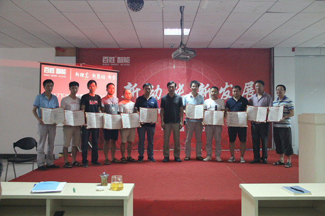 會(huì)議對(duì)上半年完結(jié)并成功上市的優(yōu)秀項(xiàng)目負(fù)責(zé)人進(jìn)行了公開表彰。劉董親自向”36V直流無刷伸縮門機(jī)、超級(jí)道閘門、人行通道廣告門“三個(gè)項(xiàng)目主要負(fù)責(zé)人頒發(fā)榮譽(yù)證書及獎(jiǎng)金。