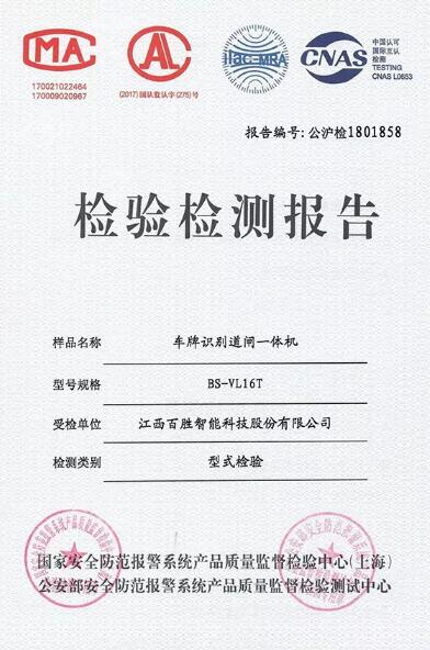 在公安三所的權(quán)威檢驗(yàn)下,百勝BS-VL16T車牌識別道閘一體機(jī)符合“GA/T 761-2008 《停車庫(場)安全管理系統(tǒng)技術(shù)要求》、GA/T 992- 2012《停車庫(場)出入口控制設(shè)備技術(shù)要求》、GA/T 833-2016《機(jī)動(dòng)車號牌圖像自動(dòng)識別技術(shù)規(guī)范》、GA/T 1132-2014《車輛出入口電動(dòng)欄桿機(jī)技術(shù)要求》”