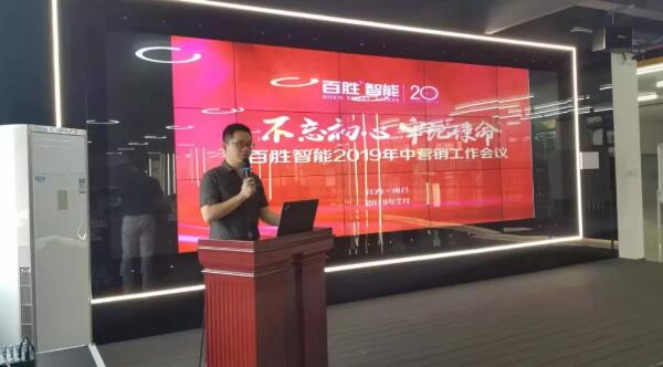 2019年7月6日,“百勝智能2019年中營銷工作會議”在百勝小藍(lán)基地隆重召開。百勝智能董事長劉潤根先生、副總經(jīng)理劉子堯先生,百勝智能、艾視特等公司中高層領(lǐng)導(dǎo),及全國31個(gè)區(qū)域經(jīng)銷商代表共同出席會議!