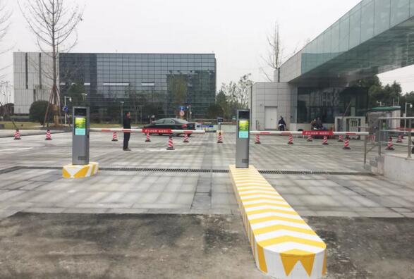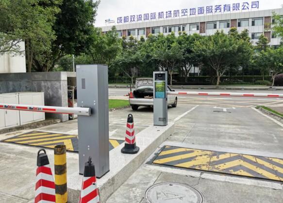 國航西南分公司停車場共設(shè)4進5出,全部采用銀色的藍卡LCD高速車牌識別道閘掃碼付一體機。