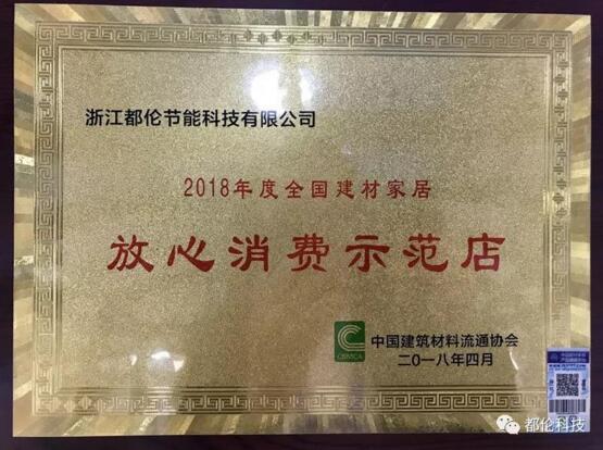 都倫在玖象家居體驗館開業(yè)儀式當天被授予放心消費示范店。