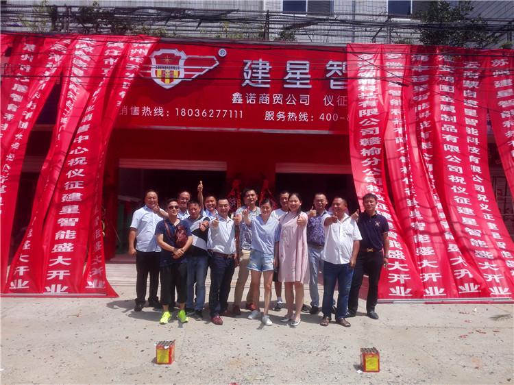 8月18日,建星智能儀征直銷中心盛大開業(yè),公司副總經理黎建圖攜營銷大區(qū)經理,以及各區(qū)域經銷商代表參加了開業(yè)典禮,祝賀儀征直銷中心鄒總生意興隆,開業(yè)大吉!