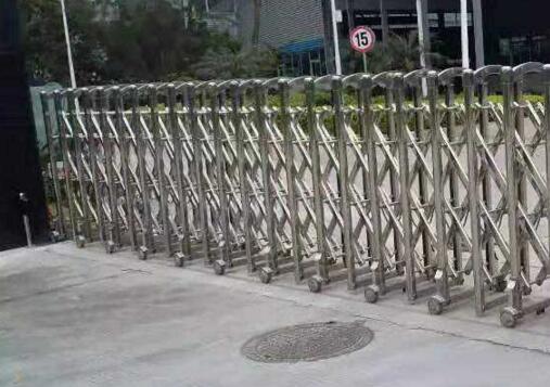 嘉興電動伸縮門門體采用優(yōu)質(zhì)不銹鋼及鋁合金專用型材制作,采用平行四邊形原理鉸接,伸縮靈活行程大,給孔雀城悅玲瓏項目不一樣的體驗。