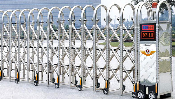 南陽伸縮門就是門體可以伸縮自由移動(dòng),來控制門洞大小、來控制行人或車輛的攔截和放行的一種門。伸縮門主要由門體、驅(qū)動(dòng)電機(jī),滑道、控制系統(tǒng)構(gòu)成。門體采用優(yōu)質(zhì)不銹鋼及鋁合金專用型材制作,采用平行四邊形原理鉸接,伸縮靈活行程大。驅(qū)動(dòng)器采用特種電機(jī)驅(qū)動(dòng),蝸桿蝸輪減速,并設(shè)有自動(dòng)離合或手動(dòng)離合器,自動(dòng)離合停電時(shí)可自動(dòng)啟閉,手動(dòng)離合停電時(shí)可手動(dòng)啟閉,控制系統(tǒng)有控制板,按鈕開關(guān),另可根據(jù)需求配備無線遙控裝置。