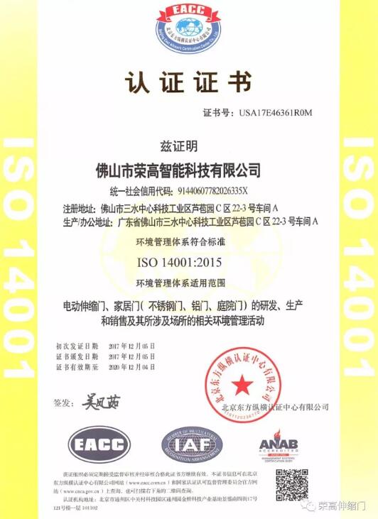 品質(zhì)的強(qiáng)化管理是榮高智能門窗獲得認(rèn)證證書的根本要素。我們將不斷提高公司質(zhì)量和環(huán)境、職業(yè)健康安全管理水平,為公司提供管理保障。