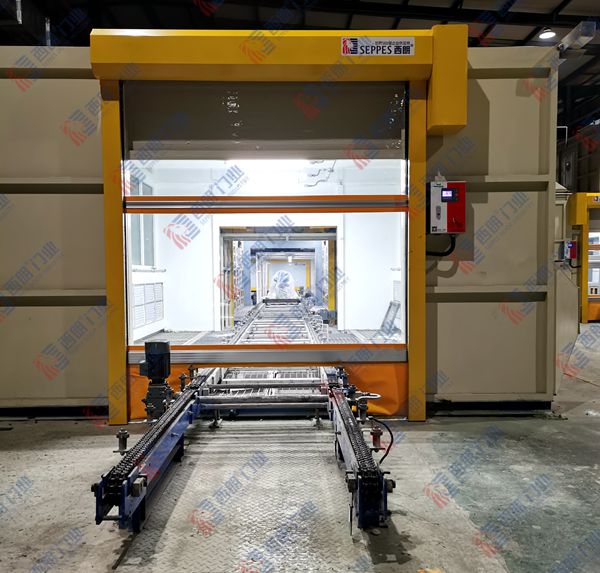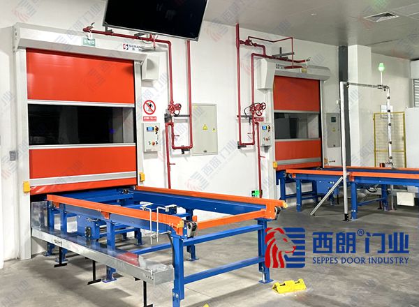 快速卷簾門運(yùn)用在輸送帶上,可以聽從輸送帶的指令:貨物運(yùn)輸?shù)介T口,快速卷簾門收到信號(hào)自動(dòng)打開,貨物離開后又自動(dòng)落下,這種功能稱為聯(lián)動(dòng),不需要增加額外的感應(yīng)配件,西朗快速卷簾門自帶這種功能。