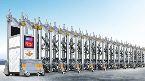 三門峽伸縮門就是門體可以伸縮自由移動,來控制門洞大小、來控制行人或車輛的攔截和放行的一種門。伸縮門主要由門體、驅(qū)動電機(jī),滑道、控制系統(tǒng)構(gòu)成。門體采用優(yōu)質(zhì)不銹鋼及鋁合金專用型材制作,采用平行四邊形原理鉸接,伸縮靈活行程大。驅(qū)動器采用特種電機(jī)驅(qū)動,蝸桿蝸輪減速,并設(shè)有自動離合或手動離合器,自動離合停電時可自動啟閉,手動離合停電時可手動啟閉,控制系統(tǒng)有控制板,按鈕開關(guān),另可根據(jù)需求配備無線遙控裝置。