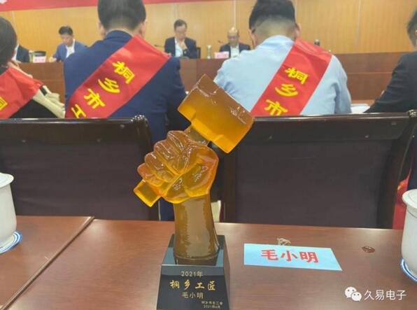 久易科技副總經(jīng)理、高級(jí)工程師毛小明同志榮獲“桐鄉(xiāng)工匠”稱號(hào),在會(huì)上受到表彰。