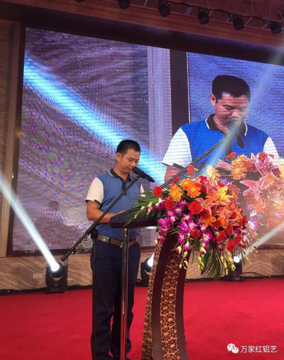 晚會(huì)由萬(wàn)家紅鋁藝董事長(zhǎng)廖財(cái)萬(wàn)致詞拉開(kāi)了序幕: